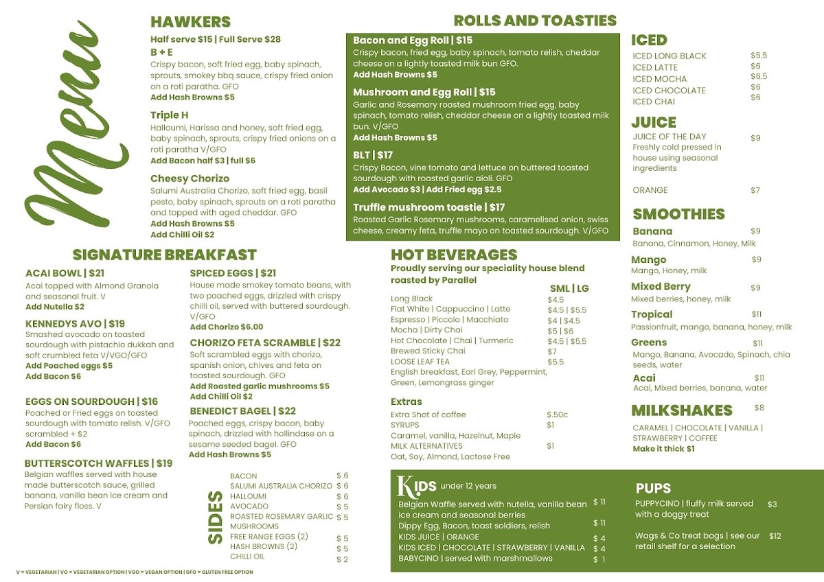 The menu is packed with tempting options, especially for breakfast lovers. Their Tropical Acai bowl, priced at A$21.00, is a vibrant, healthful option bursting with color and flavor that invigorates your morning. If you're a fan of classic favorites, you can't go wrong with the Eggs on Sourdough (A$16.00) or the hearty Brisket Benedict (A$23.00) that boasts rich flavors sure to satisfy. For a lighter snack, their Chorizo Feta Scramble (A$22.00) comes highly recommended for its savory punch. And don’t skip on the sides; the Hash Browns at just A$5.00 are a must-have, crispy and golden perfection that accompanies any meal beautifully.